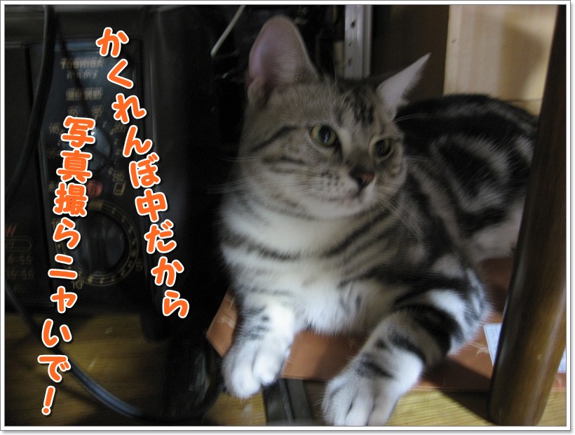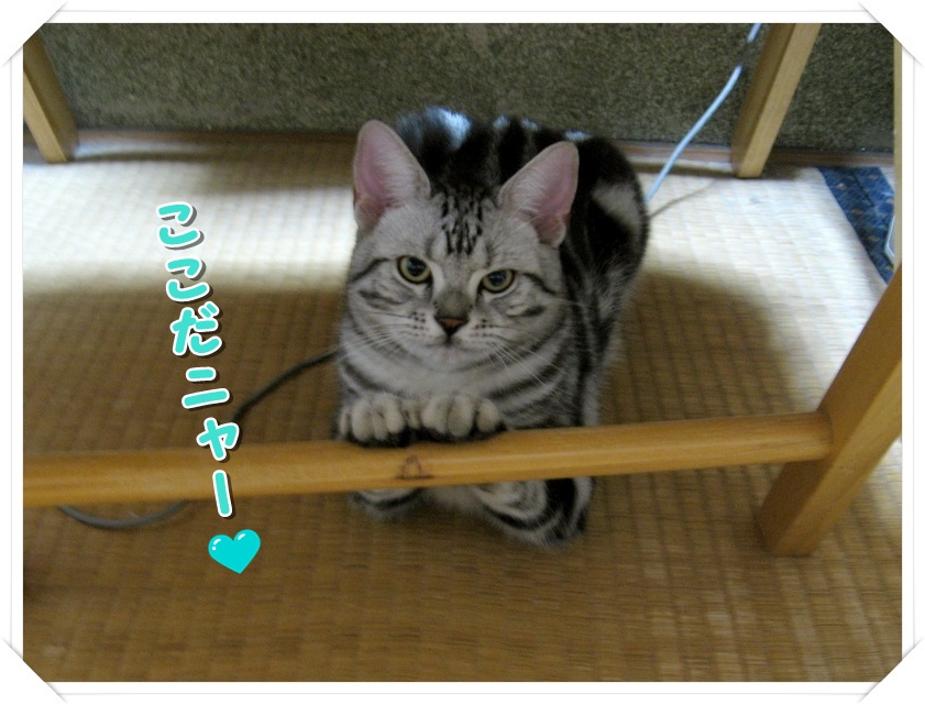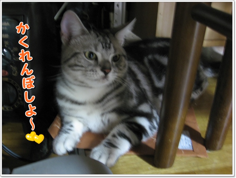 前回はかくれんぼ中のチュモンちゃんに温かいコメントありがとうございました テーブルの下って丸見えですよね! でも、本ニャンはかくれんぼしているつもりなんでしょうね♪
