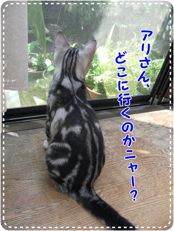 いつまでも、アリの行列を見続けるチュモンちゃんでした・・・