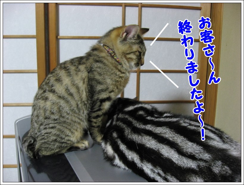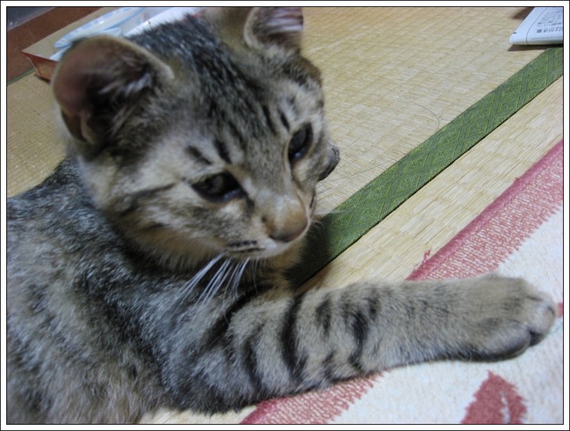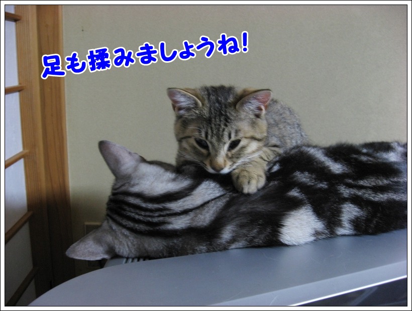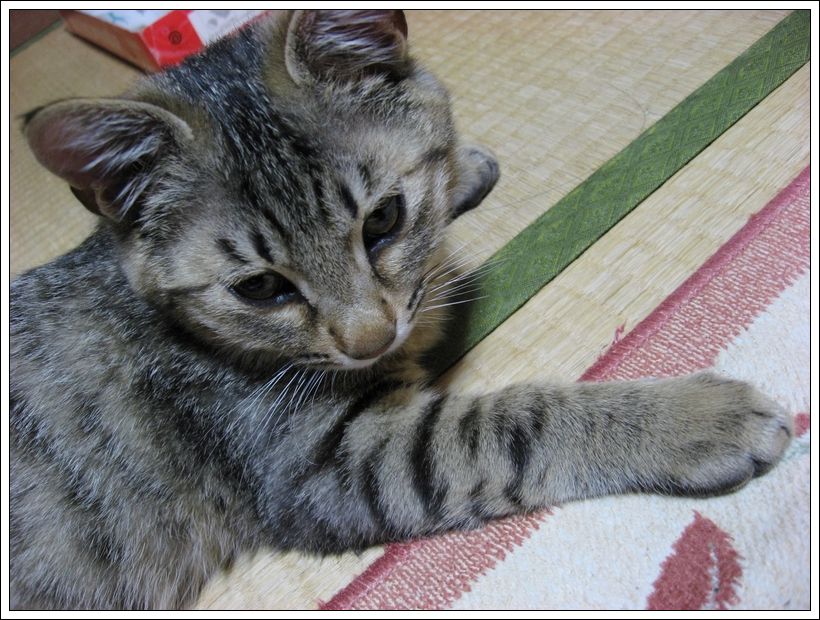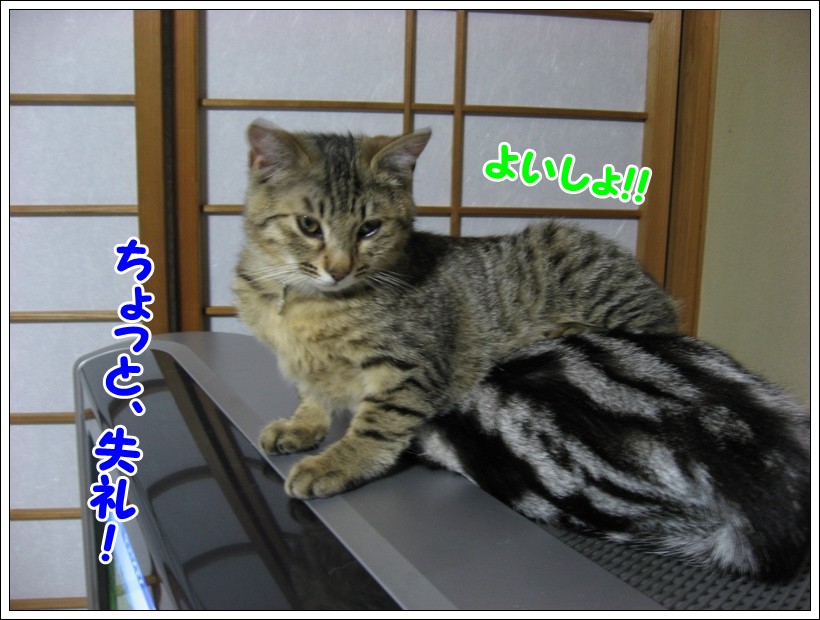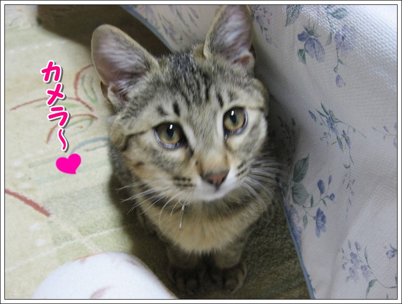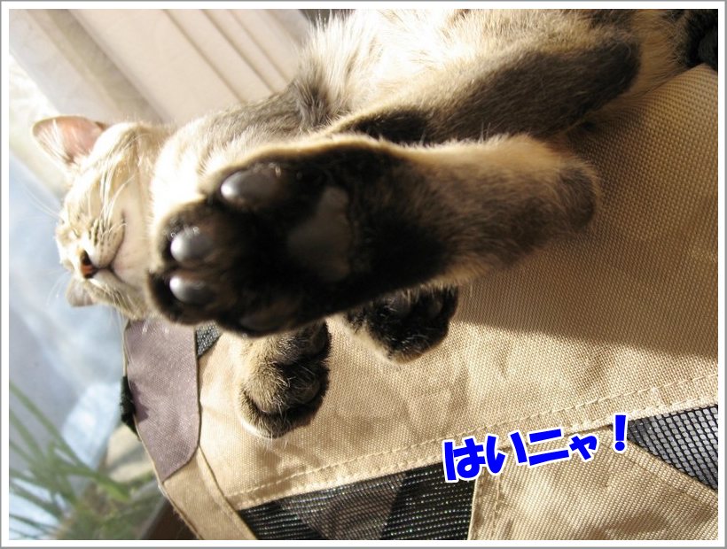 こんばんは。管理人のチュモンの代理人です。 ☆★☆ ・・・・・ ★ ・・・・・ ☆★☆ 今回は飼い主さんのベッドで寝ているユリくん! そういえば、紹介欄のユリくんの肉球は「?」のままですが・・・ ユリくん、寝ているところすみませんが、ちょっと足を見せてもらえる? もう1枚、アップでお願いしま~す はい、ありがとう 前回は去勢手術の終わったユリくんに温かいコメントを ☆★☆ ・・・・・ ★ ・・・・・ ☆★☆ 今回は仲良く外を眺める2ニャンです♪ 何が気になったのかな? 鳥でもいたのかしら? こんな時にはおやつの袋の音でも立てない限り 以前に飼い主さんに聞いた話ですが、 【おまけ】 前回は木登りチュモンくんにコメントをありがとうございましたm(__)m ☆★☆ ・・・・・ ★ ・・・・・ ☆★☆ デジカメを持って撮る気満々の飼い主さんが食台の横に座っている時のこと、 その表情がとても可愛くてパチリ そして、たまにはおもちゃとのツーショットもいいよねと、撮った写真! それとおもちゃ?を見つめる真剣な顔のユリくん! 獲物を狙っているように真剣な目ですね 【ご報告】 |