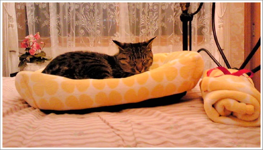 いつまでも、1ニャンで外を眺めているユリくんでした・・・ 前回は、ギュウギュウ詰めで福福顔のチュモンくんとひとり遊び中のユリくんに ☆★☆ ・・・・・ ★ ・・・・・ ☆★☆ 『こんにちは! ボク、ユリです。』